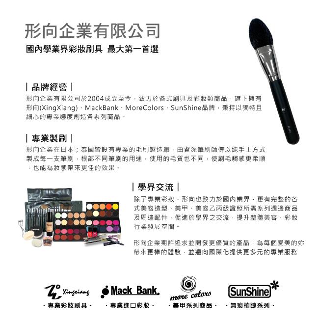 形向企業有限公司成立至今近20年,在日本和泰國皆有專業的毛刷製造廠,除了專業的彩妝刷具外,更有美容造型、美甲、美睫、美容乙丙級證照全系列周邊產品及彩妝配件。