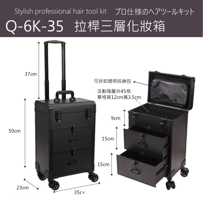 Xingxiang 形向 拉桿三層化妝箱 6K-35 美容 美髮 紋繡 美甲 彩妝 新秘 工具箱 行動工具箱