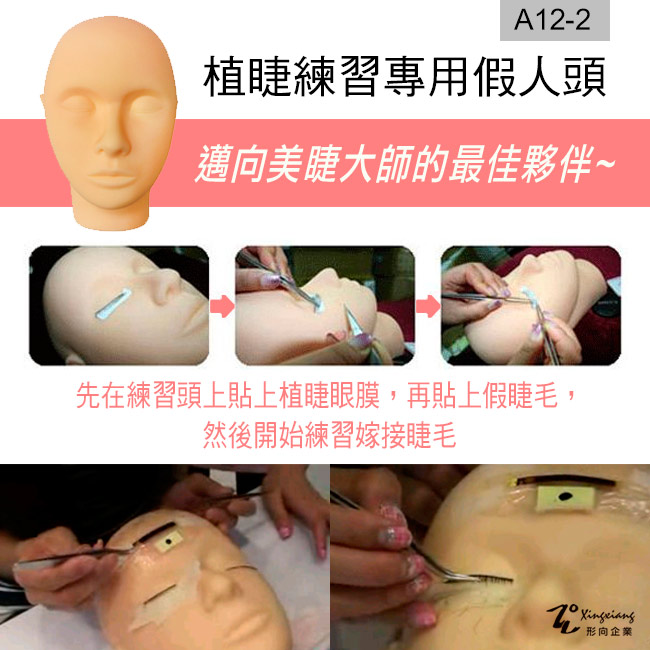 用於植睫練習時,先於假人頭黏上植睫眼膜後後練習嫁接~