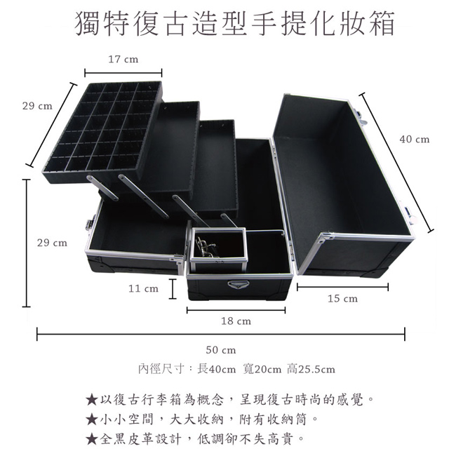 【Xingxiang 形向】復古皮革英倫風 黑色手提化妝箱(附背帶) 6K-26