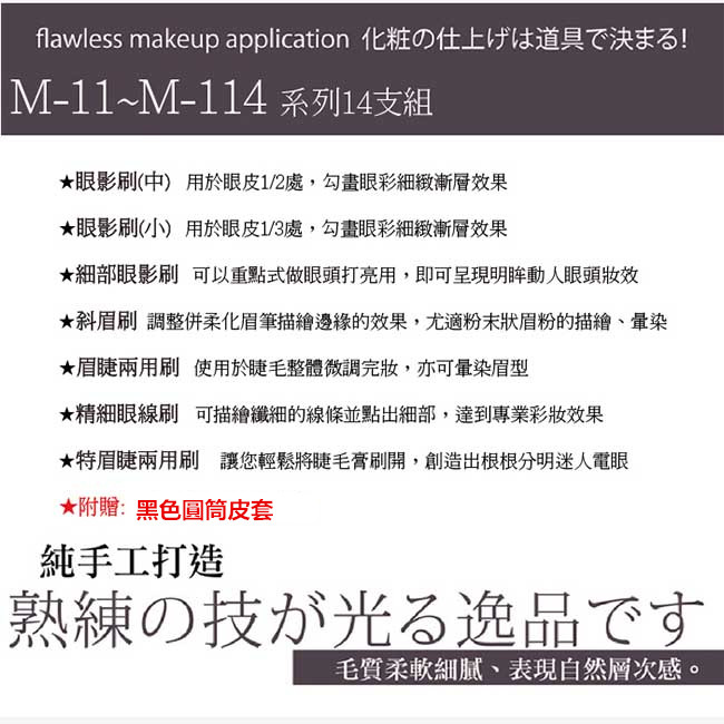 專業質感圓筒皮套/臉部大刷*4/眼影刷*4/眼線刷/唇刷/斜眉刷/睫毛捲/節眉兩用刷/鼻影刷